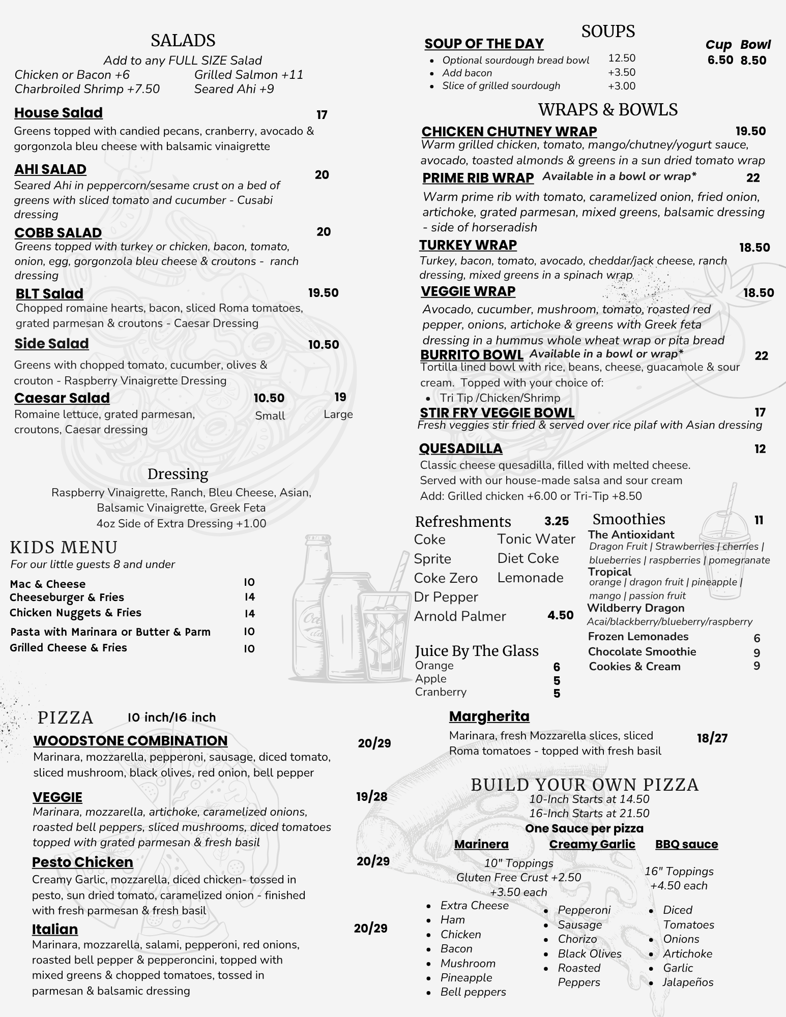 Fresh greens, wraps, bowls, and soups—plus pizzas and smoothies to round it out.